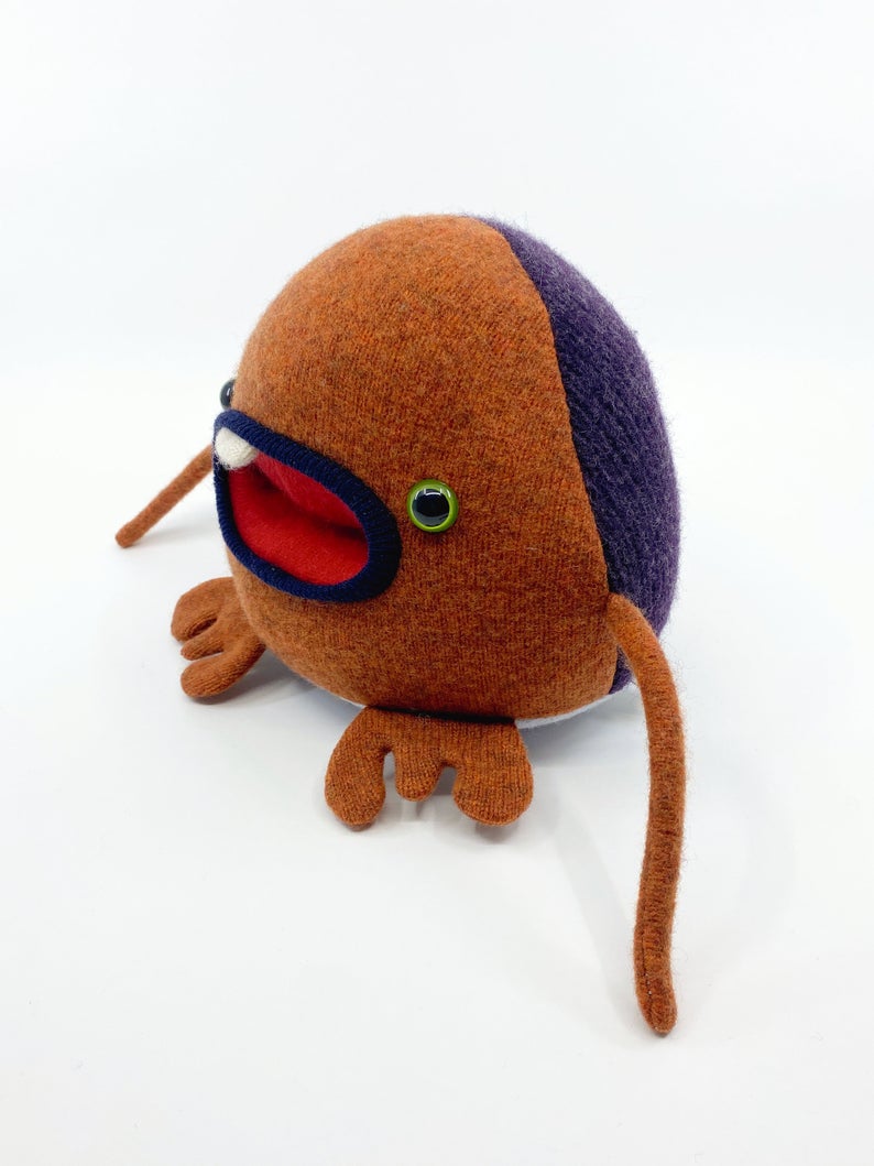 All My Friend Monster stuffies are one of a kind and lovingly handmade from upcycled clothing, (in this case, soft wool sweaters). I stuff them with new polyfil and use plastic safety eyes. Although all My Friend Monsters have been handcrafted with care, they are not intended for extremely rough play, humans under 3 or those who still like to eat their toys. Best to keep them away from the family pet as well...your new friend is NOT a chew toy!